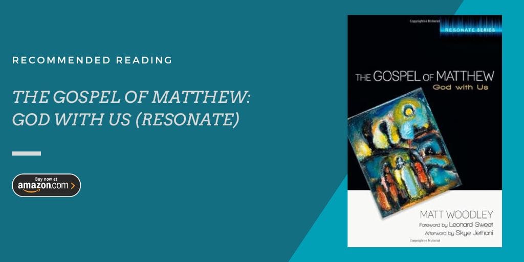 Enter the new commentary by Matt Woodley, The Gospel of Matthew: God With Us (Resonate Series). This commentary is a conversational one. It seems like it would be perfect for guiding small group discussions as people study through the Bible together.