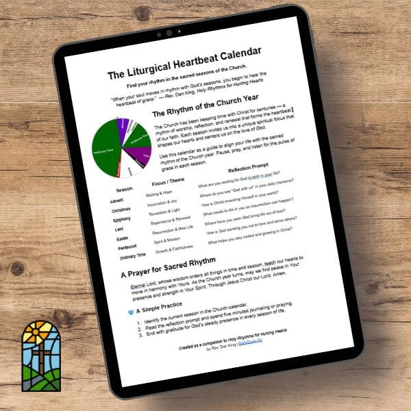 Download the Liturgical Heartbeat Calendar — a one-page printable guide that walks through the Church year, with reflection prompts for each season.